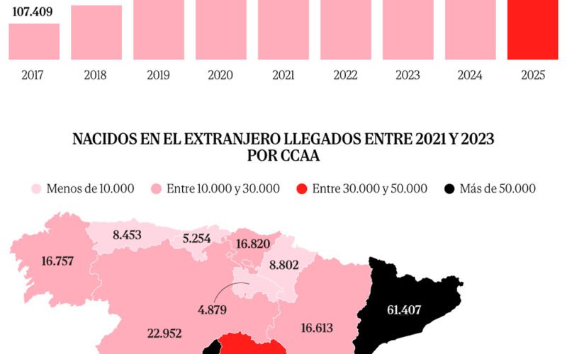 Esta regularización, además, llegaría en un contexto de un crecimiento especialmente rápido de la población en situación irregular. De acuerdo con estimaciones de Funcas a partir de datos de población del INE, el número de personas residiendo en España en situación irregular casi se habría duplicado entre 2022 y 2025, rozando las 840.000 personas, un dato que apenas superaba los 100.000 en 2017. Adicionalmente, como es habitual en los fenómenos migratorios, las personas llegadas en los últimos tres años (irregulares o no) han tendido a concentrarse en áreas urbanas como es el caso de la Comunidad de Madrid, Cataluña y la costa de la Comunidad Valenciana, que suman cerca de un 45% de la población de origen extranjero que habría llegado a España entre 2021 y 2023.